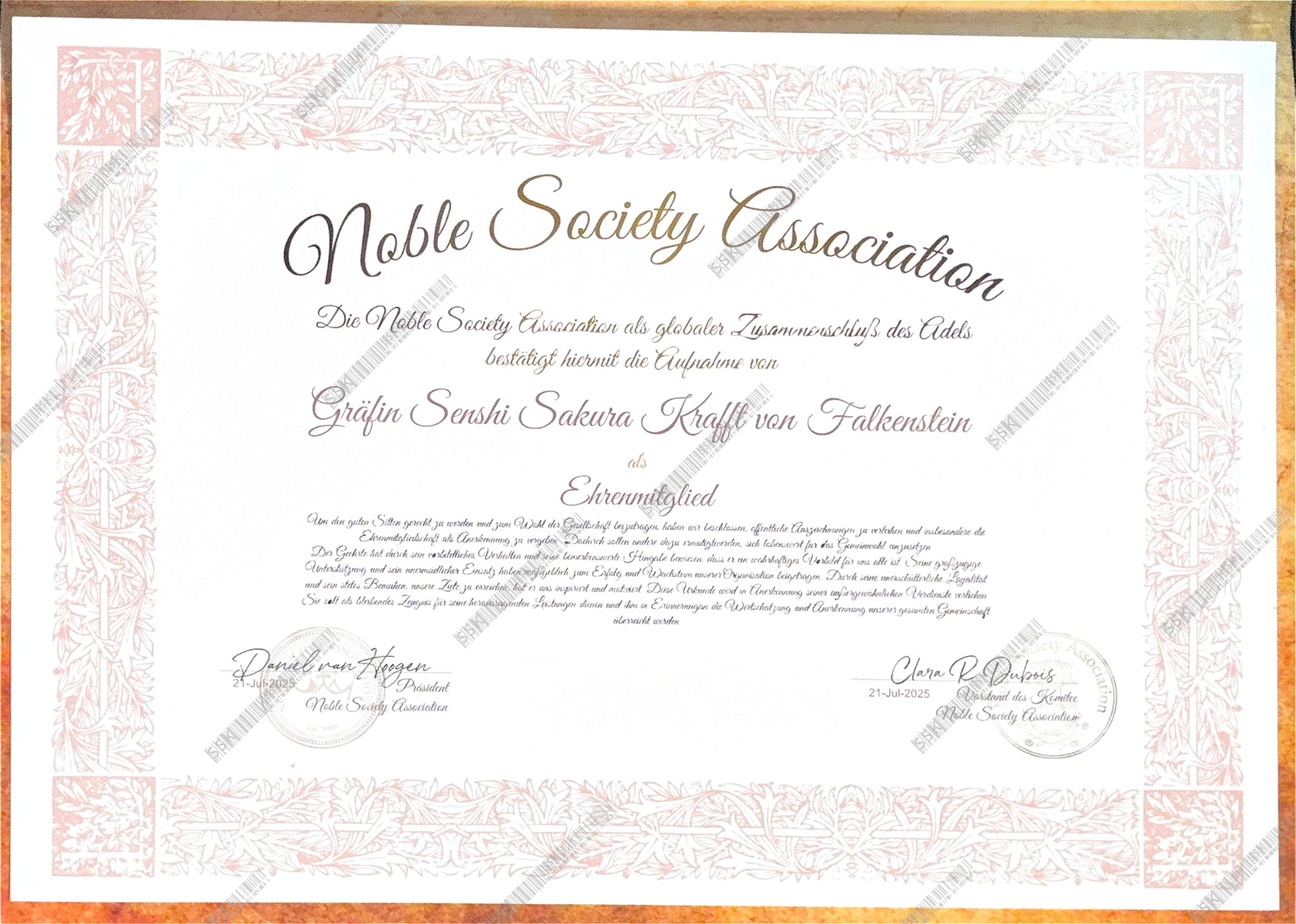 Informationen über meinen Ehrenadelstitel, meine Projekte und mein Engagement